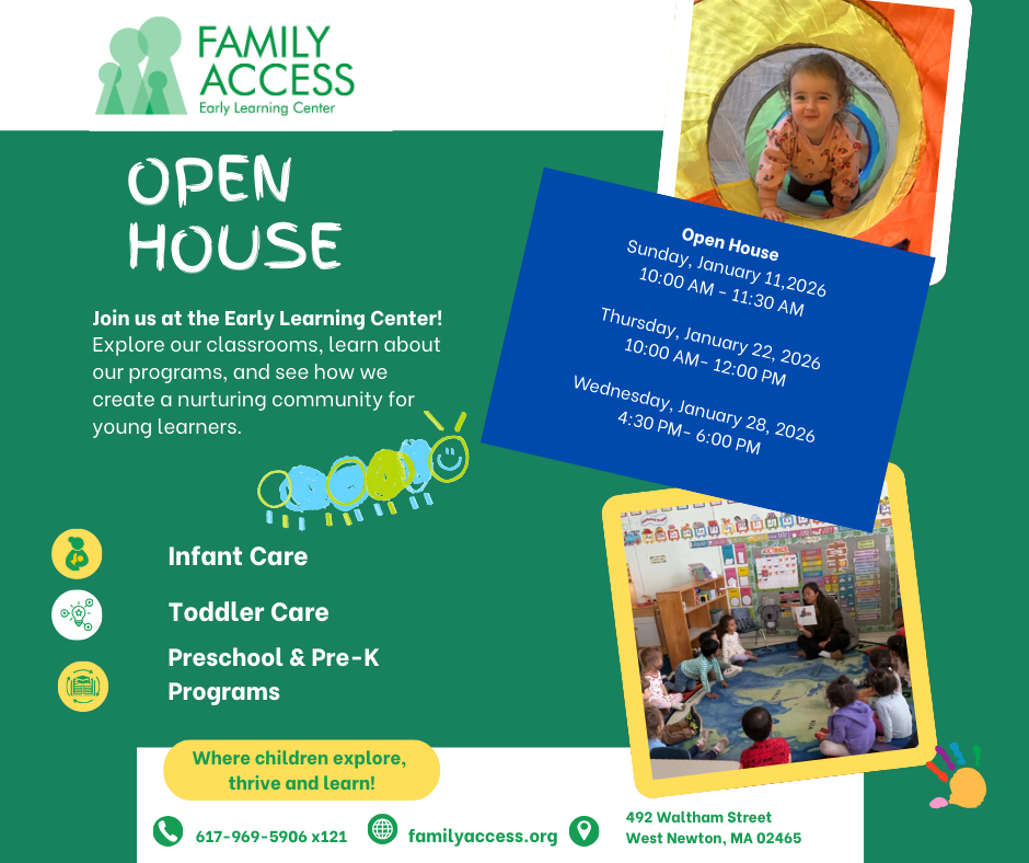 As we have for over 100 years, Family ACCESS empowers and strengthens families and the community by providing programs that nurture child development, promote effective parenting skills and supports working parents. Our new name reminds us of the doors that open, and the rich journeys that result, when children and families have access to the very best education-based resources and programs.